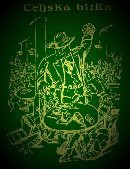 "Celjska bitka", karikatura A. Novačana - slikar Albert Sirk, Toti list, 17. februar 1940