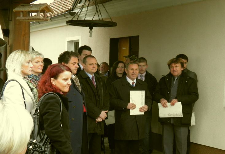 Pri Višnarju med odkritjem plošče dr. Antonu Novačanu v Zadobrovi pri Celju 20. novembra 2010 foto:Š.R.